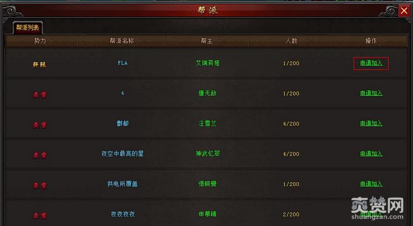 玩家们在游戏中打开帮派界面,可以直接申请加入同势力的帮派,但要注意,非本势力的帮派玩家们是无法申请的。