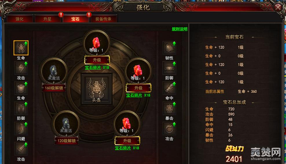 玩家的每件装备都拥有五个宝石位,只要玩家符合解锁等级,玩家就可以消耗一定数量的宝石碎片来解锁宝石,获得宝石的属性加成,此外,对于已经解锁的宝石,玩家还可以消耗一定数量的宝石碎片来进行升级,玩家宝石等级越高,所需要消耗的宝石碎片也就越多。