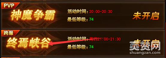 当玩家等级达到74级后终焉峡谷这一玩法即可开启,玩家们每周可参加一次,时间为21:00-21:30。活动为大跨服玩法,按照区服分为七个战区,根据战区在不同日期,相同时段开启,玩家们只要在活动中击杀峡谷守卫或是其他玩家即可获得荣誉积分,荣誉积分达到不同指定值皆可获得不同丰厚奖励;