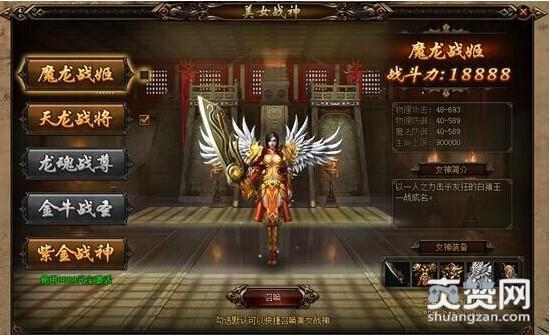 首先玩家自身的等级是有一定的限制的,只有当玩家自身的等级到了45级的时候,才能够开启战神系统了。点击游戏右上方的“美女战神”图标,即可打开战神系统。当您第1天等级达到45级后,就可以召唤“魔龙战姬”,当您累计登录3天就可以召唤“天龙战将”,当您累计登录7天,就可以召唤“龙魂战尊”,当您等级达到5转105级时,就可以召唤“金牛战圣”,最最尊贵的“紫金战神”则需要高昂的出场费,非一般玩家可以承受。VIP玩家可以提前召唤高阶的“天龙战将”、“龙魂战尊”、“金牛战圣”。