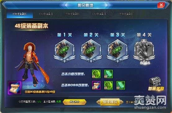 游戏中奥朵秘境副本共分为45级、60级、75级、90级、100装备副本这几类,每个副本中存在数关提供挑战,玩家们无论是击杀小怪、boss或是通关关卡都可以获得相应等级珍贵的装备卷轴用来对装备进行升级,同时玩家们还能获得大量的升级石和强化石,而且首次通关时,还能获得大量的其他道具礼包。