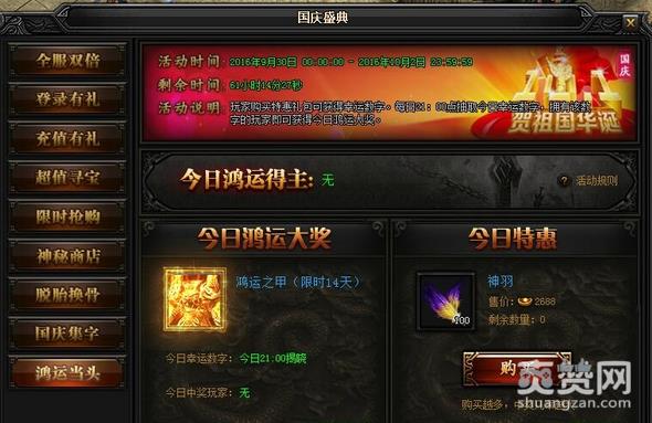 以上就是小编为您带来的蓝月传奇鸿运当头玩法攻略的全部内容了,如果你的条件允许,不妨购买几个特惠礼包试试自己的运气哦,下一个大奖说不定就花落你手中咯。