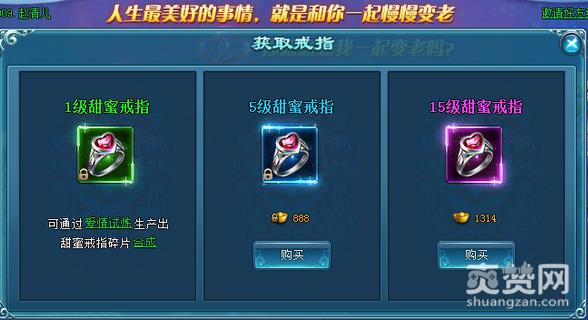 首先小编要很明确的告诉大家结婚戒指是不共用的,结婚的双方都需要有一个结婚戒指,想要获得结婚戒指有三个途径:一是和任意一个人在爱情试炼副本中通关获得甜蜜戒指碎片然后合成1级甜蜜戒指;二是花费绑定元宝在商城绑定元宝专区购买5级甜蜜戒指;三是在商城元宝专区花费元宝购买15级甜蜜戒指。甜蜜戒指的等级高低会影响结婚后的戒指属性高低,不过大家可以不用在意,结婚后也可以继续将戒指升级,只是快慢的问题而已。