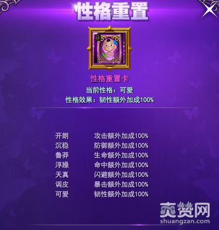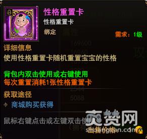 《魔法王座》性格重置卡是给出生后子女改变性格的必需品,考虑到子女的性格对玩家角色非常重要,所以使用性格重置卡来调教子女的性格也是非常必要的,因此玩家们想要调教出好的性格,可能需要一定的代价,比如金币、精力这些,当然运气好的话也有可能一次成功哦!祝你好运!