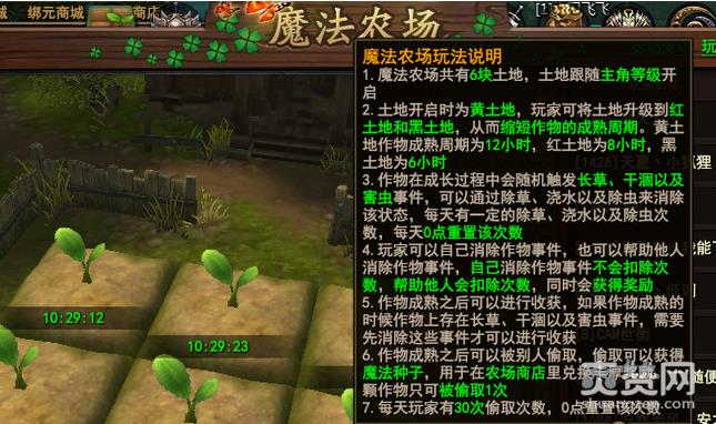 当其他玩家的树苗成熟后,玩家就可以从他的树苗上获得魔法种子,这些魔法种子可以用来在农场商店中换取各种材料和技能书奖励。玩家每日有30次的偷菜次数,玩家需要尽量的找到成熟的树苗来获取种子奖励。