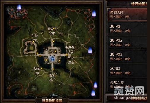 首先我们说说勇者大陆,这个算是新手都要接触的地图了:勇者大陆地处奇迹大陆中央。终年阴雨连绵,气候潮湿闷热。植物由充满黑暗阴森气氛的草地所构成。这里的NPC数量是所有地图中最多的。因为地步交通要冲,所以也是玩家聚集最多的地方。这里是剑士、魔法师初生的地方。适合30级以前的职业在此练级。城镇中的酒吧是勇士们聚会畅谈的绝佳去处。在这里修炼到30级后,一般来说,就可以进入冰风谷了。主要怪物: 蜘蛛,幼龙,牛怪,猎犬怪,蛮牛怪,黑巫师,巨人,骷髅兵。