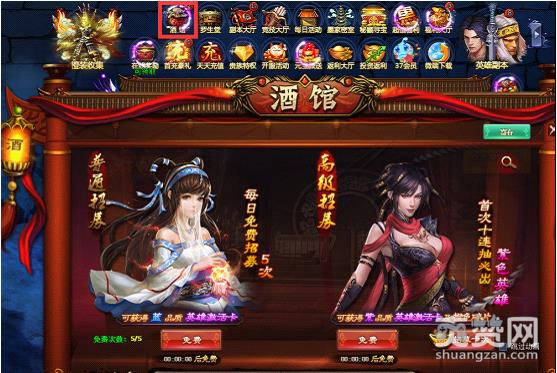 玩家们点击主界面上方的酒馆按钮,即可进入酒馆招募的界面,这里便是获得这些英雄角色的地方,酒馆招募分为普通招募和高级招募两种,普通招募每天有5次免费机会,高级招募每隔20小时有一次免费的机会。其中普通招募可以获得蓝色英雄碎片、蓝色英雄经验书,一定几率可获得蓝色英雄激活卡;高级招募可以获得紫色英雄碎片、紫色英雄经验书、橙色英雄碎片和紫色英雄激活卡,一定几率可以获得橙色英雄激活卡,10连抽有一个很不错的福利,必出一个紫色英雄激活卡。