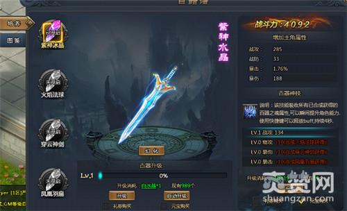当玩家们完成主线任务并达到60级时即可开启百器系统,百器可以增加人物角色的各项属性,提升百器的阶数,不只增加更多的属性,并可获得更炫酷的百器神技能。游戏中当然也提供了提升百器能力的途径,那就是进阶,消耗“水晶”即可为你的百器进行进阶,每颗水晶可提升百器进阶祝福值,当百器进阶祝福值达到满值时,百器将进阶到下一阶,暂时这一道具可通过参加活动获得。且不同的百器需要不同的水晶激活,不同的百器升级也需要不同的水晶。