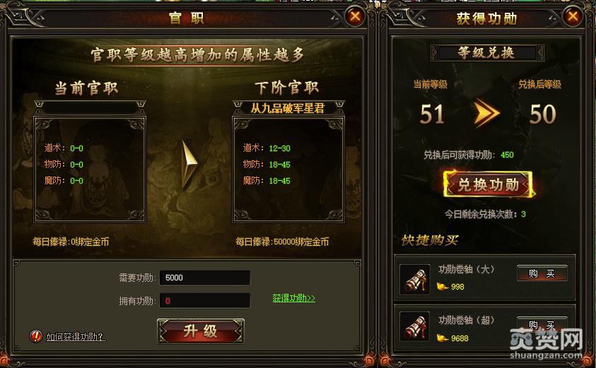 玩家可以通过人物按钮进入官职面板进行操作,玩家通过完成任务可以开启官职系统,通过提升功勋来增加官职等级。那么不禁有小伙伴们要问功勋值该怎么得了,小编总结了一番,其实通过完成每日任务获得功勋、击杀BOSS获得功勋卷轴或者商城购买功勋卷轴就能够增加不俗的功勋值得。与此同时,随着玩家们官职的提升,玩家每天可以领取对应官职的俸禄,岂不是美滋滋呀!