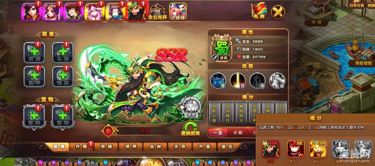 酒馆中是武将们的主要产出途径,其中SSR武将最为稀有: