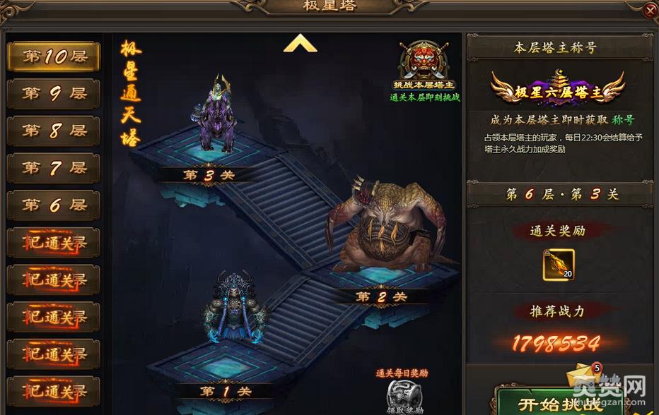 极星塔其实类似于闯关的玩法,塔中共有10层,每一层都由10位能力强劲的BOSS组成。玩家们通关了当前层次所有关卡即可顺利进入下一层之中,同时除去10个boss的镇守外,每层设有一个由玩家担任的塔主职位可供玩家争夺,一旦挑战成功即可代替其位置成为塔主。成为塔主不仅仅是能够受玩家们瞻仰,十分具有荣誉感,更可以获得称号奖励,同时每天晚上22:30在塔主职位的玩家还可以获得战力加成,炫不炫酷?但是塔主的称号在每周末00:00也会重置,给了广大的玩家小伙伴们平等的机会。