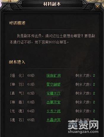 星空峭壁副本是材料副本中的一种,它是专门产出大量神羽的一大副本。角色等级达到62级或以上的玩家就能够在盟众省(130,100)处找到材料副本NPC古钟飞,花费一个副本卷轴进入副本。玩家每天可获得2次挑战该副本的机会,每日零点自动刷新。