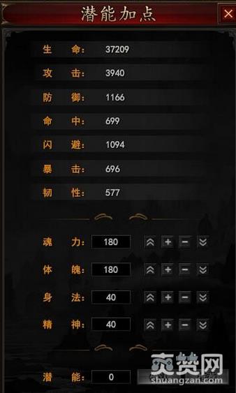 首先小编要跟大家明确一下四个潜能分别的作用,潜能分为魂力、体魄、身法和精神四种,魂力值影响我们的攻击力;体魄之影响我们的生命和防御;身法值影响我们的命中和闪避;精神影响我们的暴击和韧性。追求暴力并且喜欢PK的玩家可以主加魂力和精神,想要增加生存能力的毫无疑问是体魄和身法,也有一些脸黑经常不暴击的朋友会选择魂力和体魄的组合,大家可以根据自己的需要来给潜能加点。