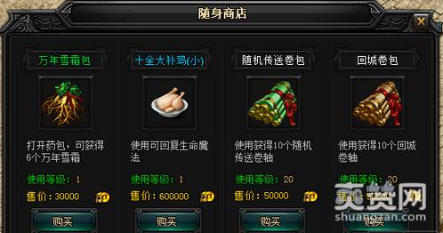 点击背包,玩家们就能够看到下方的随身商店按钮。其中出售着不少的道具,那么究竟蓝月传奇随身商店究竟出售哪些道具呢?