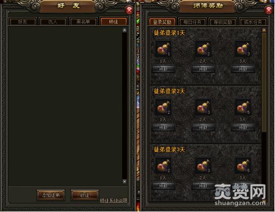 师徒界面可以通过页面下方的“友”进入师徒系统界面。作为师傅能够领取到的奖励还是不少的,徒弟们只要每日登陆、提升等级、完成日常任务成长任务,为师的都能够获得丰厚的道具奖励,下面就来看看小编的总结归纳。