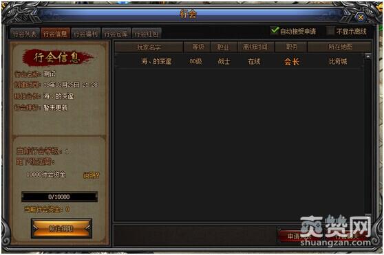 行会系统中玩法十分丰富,像是行会福利、行会红包、行会仓库等等玩法都有非常有趣。同时玩家们不断积累自己的行会贡献,还能在行会仓库中兑换自己需要的装备了。那么行要怎么样才能够创建呢?当角色等级到70级时,玩家们就能够深入加入一家行会了。玩家也可以自己创建行会,创建行会需要消耗一定的资源,也想好一个狂拽炫酷的行会名称。玩家还要满足以下3个条件:1、 绑定金币*100000;2、沃玛号角*1,玩家可花费300元宝购买;3、需要VIP等级2。创建人将会自动成为行会会长。只有未加入行会玩家才能创建行会哟。满足了以上的条件,点击确定创建即可成功创建一个属于自己的行会了。