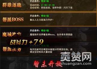 游戏中,帮会活动包括帮会任务、群雄逐鹿、帮会BOSS和魔域地牢这几种。帮会任务不用多说,相信大家都相当了解了,玩家只要每天完成20环帮会任务,就可以获得大量的法宝材料和经验奖励;群雄逐鹿,这是最为刺激的帮会活动,每天晚上的21点至21点30分,帮会战力前12名玩家可以参战,完成该帮会活动就可以获得宝石路宝、帮贡和银两奖励;帮会BOSS,这是帮会活动中奖励最好的一个!只有帮主才能开启帮会BOSS,每天只有一次且消耗帮派资金,只要击杀帮派BOSS就可以获得大量奖励;魔域地牢,该帮会活动需要帮派成员组队参加,每天只能参加一次,成功通关就可以获得仙灵精华、绑银、宝石礼包和白银令牌。