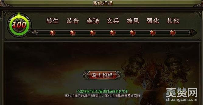 游戏中,系统扫描玩法将于67级正式开放,玩家们只需点击左上角人物头像战力旁放大镜图标即可进入。点击马上扫描即可对自身战力情况分析哦!系统将从转生、装备、坐骑、玄兵、披风、强化、其他这几个方面对角色进行全面的分析,各个系统是缺陷还是完美立刻呈现眼前!值得一提的是,玩家们积极参与每日扫描更可入榜抢夺称号哦,绝对更是一大惊喜了!