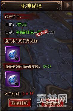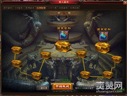 游戏中,玩家们点击界面右上角的“单人副本”按钮,打开“化神秘境”即可进入一探玄机。进入副本后,玩家们需要时时留意当前关卡的剩余时间,如果不能在指定时间内消灭当前敌人,则挑战失败。不管胜利失败,都会获得对应的奖励,闯过的关卡越多,奖励越多。另外,在一些特定的关卡还会有额外的通关奖励!