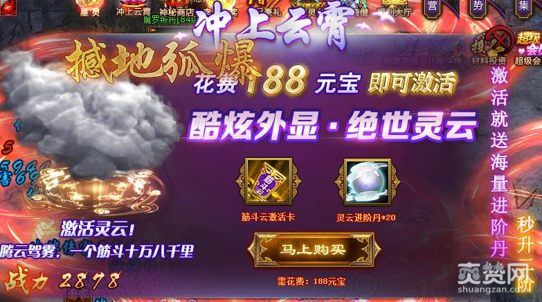 游戏中,玩家们可以在主界面正上方找到“冲上云霄”的按钮,点击即可进入相应的界面当中。其实获取的方式很简单,玩家们只需要花费188元宝即可顺利获得筋斗云激活卡与20个灵云进阶丹。这样就能够顺利激活灵云筋斗云,立刻获得炫酷外显,并同时可以顺带使用掉灵云进阶丹将其秒升二阶,绝对是行云流水十分流畅的。