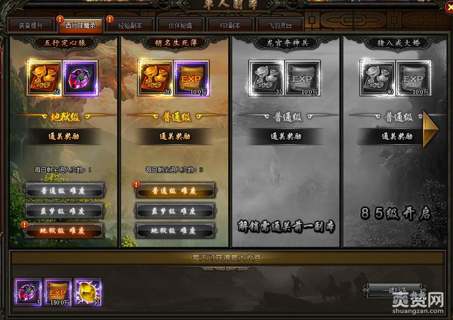 五行降魔录中副本分为数关,每天每天都有三次的挑战机会,并根据难度将其分为普通级、噩梦级、地狱级。难度越大,获得奖励也相应就越好。副本中,玩家需要按照副本要求击杀指定数量的怪物,帮助自己达成副本目标。此外,在五行降魔录副本中还有这特殊的副本BOSS,玩家们需要在限时内快速击杀副本BOSS才可以成功通关装副本,获取副本奖励。