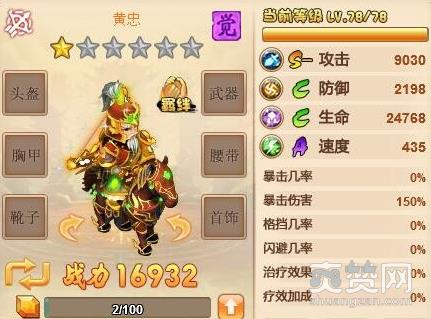 升星方面,因为黄忠属于橙色品质的武将,在碎片的获取上面自然是不如蓝色武将来的轻松,我们可以通过寻访、黑市商人、游历武将以及不定时的活动等方式来获取黄忠碎片;在装备的搭配上,因为黄忠技能的特殊性,爽赞小编更加考虑回去选择冥海套,除了带来速度加成意外,还有概率的额外攻击机会,尤其是在觉醒后,可以50%几率无视敌人的防御,这一下下打出的真实伤害,也够敌人喝一壶的了;宝石方面,因为每个装备部位都规定只能镶嵌某个种类,有攻击就攻击,没攻击选血量或者暴击都可以哦!