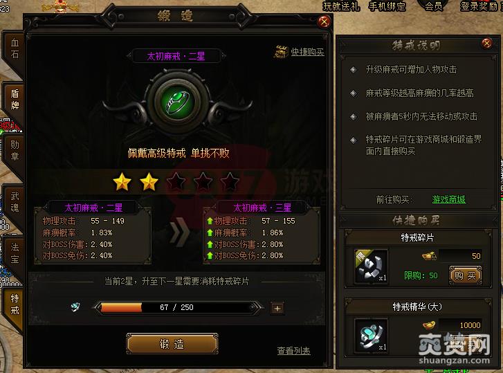 像是麻戒就能够增加人物的攻击,戒指等级越高麻痹的几率也就越高,被麻痹者在5秒内无法移动或攻击。但激活这一效果的概率其实偏低,玩家们可以通过升星来提升麻痹几率,升星需要消耗一定量的特戒碎片。玩家可进入商城,购买一些特戒碎片,或者通过幸运挖宝玩家,可挖到一些特戒碎片材料。此外,玩家通过部分特殊活动,也可获取到一些特戒碎片。