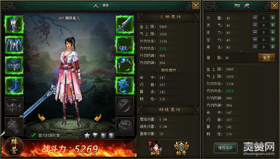 门派技能:三环套月、万剑归宗、剑冲阴阳、剑化三清、剑碎星辰、太极无极、天罡剑阵