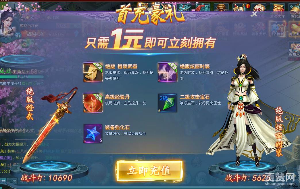 还有,《思美人》还提供了丰富的首充福利,首充1元即可获得绝版武器时装,还有宝石及高级经验丹,这个高级经验丹就可以让59级及以下的角色立刻升级一级。