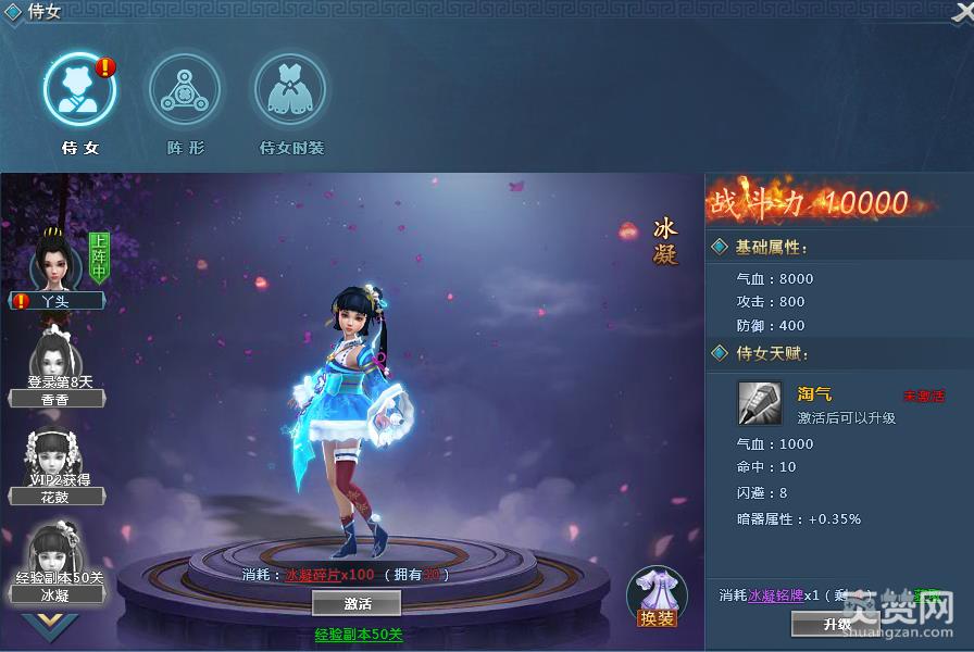 当经验副本50关打通之后,会解锁冰凝,侍女天赋是淘气,需要消耗冰凝铭牌升级。