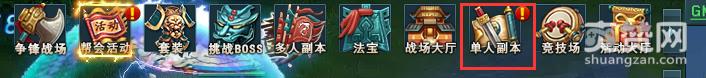 点击游戏界面上方活动栏目中的“单人副本”按钮即可进入。