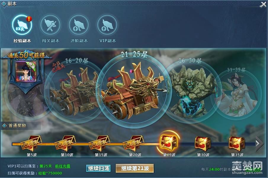 经验副本在每天的24时会自动重置,并且可以在第二天扫荡已经打通的副本,获得通关奖励。