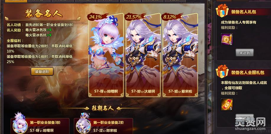 再说说名人堂里面最好拿的炼器名人。一阶不用说只要符够第一天就能拿到但是没有小号的提供基本上是第一天肯定拿不到的,一二阶都是很差符的,需要买或者小号去刷然后补贴大号,能拿到就拿了资源是累积的。