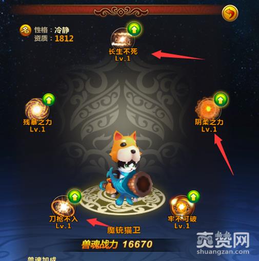 然后魂猎完了,除了主宠的这三个其他都是三级就先够用了主宠这三个阴柔最好6级生命和刀枪5级,经验是肯定够用的。这样一关一关的打基本上20 和40关的幻兽宠物大多数会掉出来。