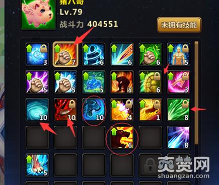 技能的优先级,被我圈出来的前期没有不算,前期高风袭高暴击,7级宠物出战毒攻.5级的出战毒抗.冰雷火三个抗性3级绝对够用。傲狠的金色技能3级就好,不需要太高,舞火是人物的主流前期6级但是一开始不用升级要确保先幻兽再说其他的,一开始就升级风袭,刺杀术,魔穿,三个就好,至于幻兽的阵法我真心没啥好说的,说了不理解的还是不理解,我给一个最靠谱的阵然后你慢慢的根据细节自己调动。