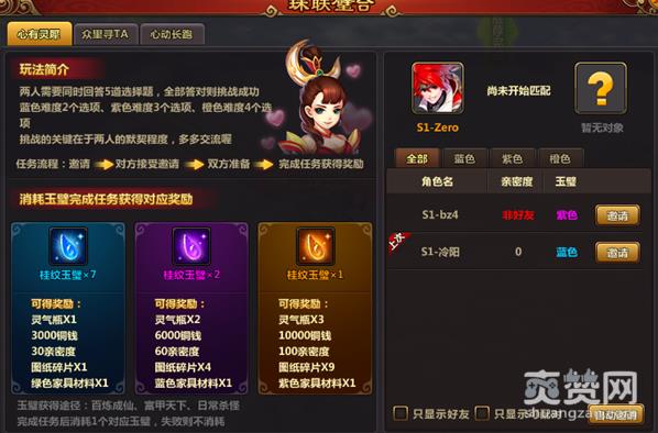 3、玉璧等级:蓝色、紫色、橙色,分别对应玩法的等级为简单、普通、困难。完成任务后消耗一个对应玉璧,失败则不消耗