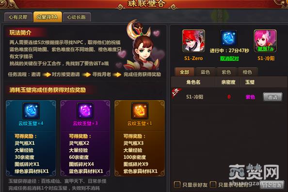 任务流程:邀请→对方接受邀请→寻找月老→完成任务获得奖励。