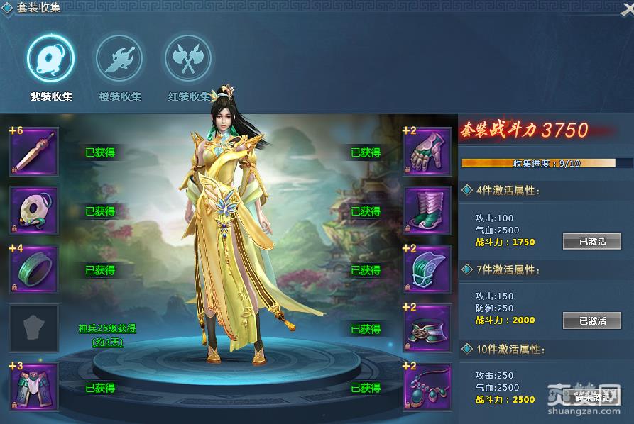 玩家可以通过装备图谱升级套装品质,品质越高战力越强。