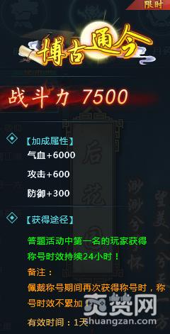 4. 单场答题正确数最多的玩家可以获得限时称号“博古通今”,时效为24小时。