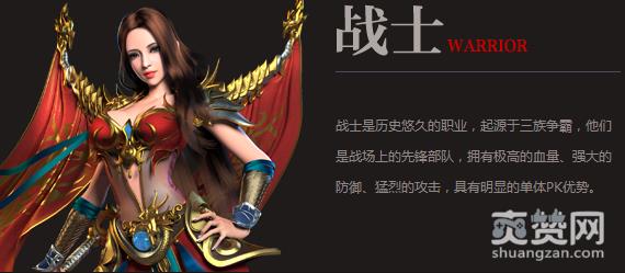 介绍:战士是一种历史悠久的职业,起源于三族争霸,他们是战场上的先锋部队,拥有极高的血量、强大的防御、猛烈的攻击,具有明显的单体PK优势。他们是狂热的好战分子,敢于面对一切挑战,疯狂的杀戮使他们威名远扬。“刺杀绝技”、“半月弯刀”是他们的基础剑技,“烈火狂刀”是他们的成名绝技,熟练掌握各种技能的强大战士,绝对是敌人的噩梦。