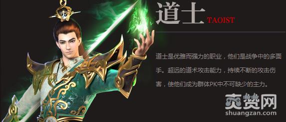 介绍:道士是优雅而强力的职业。他们会使用众多神秘的技能,能够召唤神兽作为帮手,轻松应对各种危险。他们是战争中的多面手,能够帮助友军治疗伤势的“恢复术”、能够增强己方的防御能力的“护盾术”、能够杀人于无形的“毒药术”、能够隐藏自身的“遁隐术”。超远的道术攻击能力,持续不断的攻击伤害,他们是群体PK中不可缺少的主力。