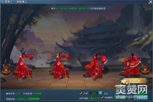 每位玩家每天可参与3次护送,所护送的美人分成4种品质,品质越高,护送完毕后获得的奖励越高。