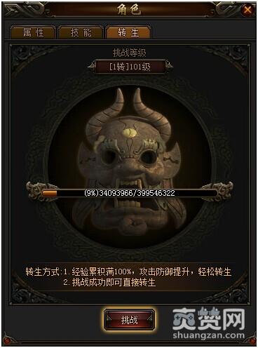 点击“挑战”进入转生副本,挑战心魔,只有在规定时间内击败心魔,才能进行转生。
