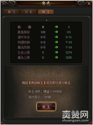 当您需要转生时,会在游戏下方出现“转”图标,点击“转”图标,打开转生界面。