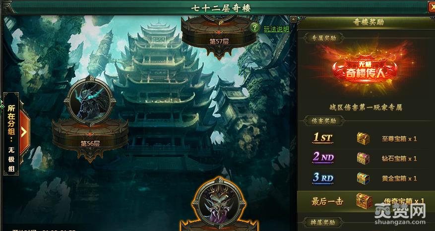 同时,七十二层奇楼玩法副本根据玩家的等级分组:英武组100级-139级, 第1-18层楼;140级-159级 ,第19-36层楼;天威组160级-199级 ,第37-54层楼;无极组200级以上,第55-72层楼;
