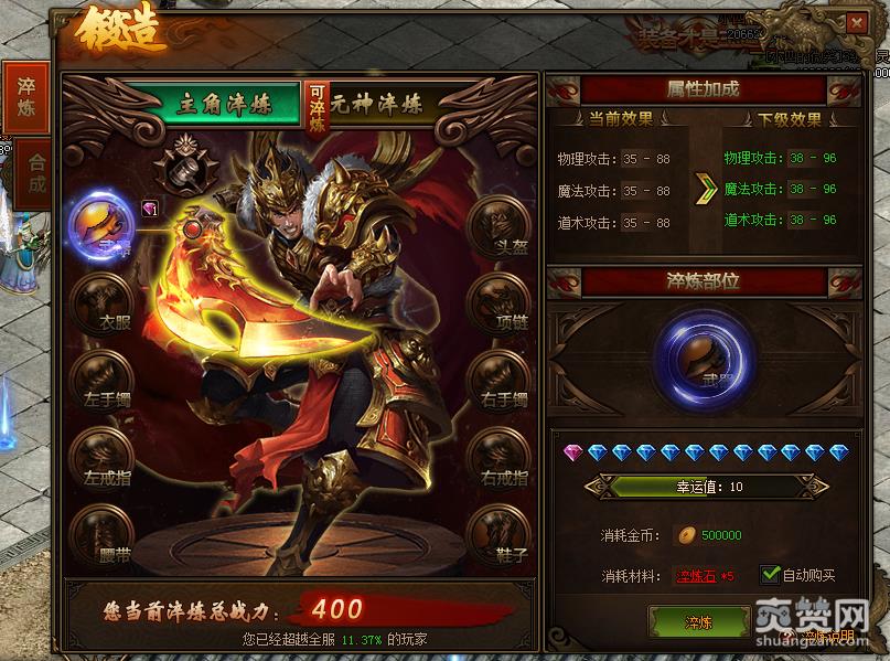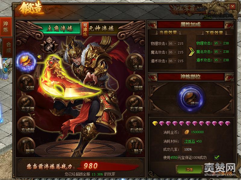 装备的培养很耗钱,为了省一点钱,在淬炼装备时务必用元宝提升一下成功率,尤其后期淬炼,若不用元宝帮忙,总淬炼失败真的会让我们痛苦得怀疑人生。