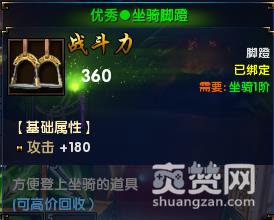 2.坐骑装备的品质分为四阶:优秀、精良、史诗、传说。阶位越高,装备所提供的的属性和战斗力加成越高。