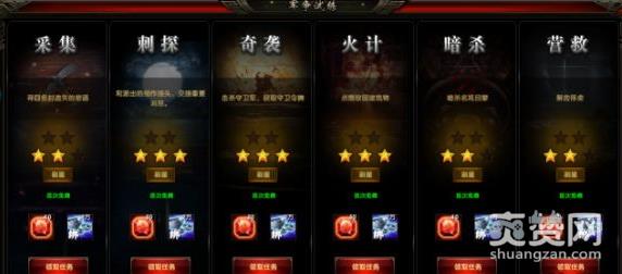 在游戏中,军争试炼绝对是玩家们快速获取功勋值的不二选择,玩家每日可领取六次军争任务,分别为采集、刺探、奇袭、火计、暗杀和营救。任务奖励从一星到五星依次增长,玩家每日均可对上述六个任务进行一次免费刷新,累计星级越高奖励当然也就越好。
