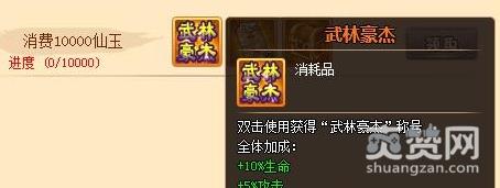 今天讲到的这个武林豪杰称号,可以给我们带来10%的生命加成,还有5%的攻击和防御力提升,对比起之前的称号,属性实在是好太多了。目前玩家们只能够通过充值的方式来获得这个称号,在活动期间内,玩家们消耗的仙玉达到指定数量以后,就可以获得丰厚的奖励,除了武林豪杰称号以外,还有两个拜帖以及铁匠礼包。除了这个,因为我们消费了10000仙玉,与此同时每日充值领豪礼的那些奖励我们也可以领得到,这可真是一举两得。