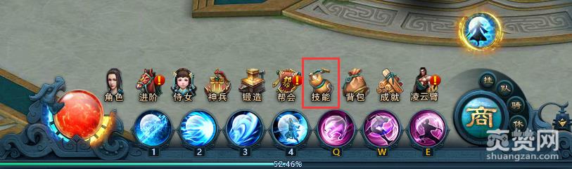 在游戏界面下方点击“技能”按钮就可以看到思美人楚辞系统的入口。
